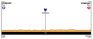 Le départ a lieu d'une rampe de lancement devant le complexe du Jaarbeurs Utrecht, dans l'avenue Truus van Lierlaan. Après 200 m, les coureurs tournent à gauche dans l’Overste den Oudenlaan. Après 500 m, ils atteignent un rond-point, tournent à gauche dans la Koningin Wilhelminalaan, effectuent une boucle de 12 km dans la ville sur un parcours entièrement plat et une vingtaine de virages pour la plupart larges. Ils retrouvent l’Overste den Oudenlaan et terminent le contre-la-montre dans la Croeselaan près du Jaarbeurs[1].