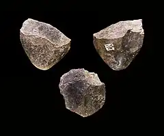 - 1,76 million d’années AP : premiers bifaces, outils de pierre taillés en forme d’amande, plus ou moins symétriques, typiques de l’industrie lithique de l’Acheuléen, attribuée en Afrique à Homo ergaster. Certains de ces bifaces ont une qualité de facture telle que le souci esthétique de l’artisan semble indéniable au-delà de la simple utilité pratique, et leur production peut être considérée comme les débuts du design[5]. Les plus vieux connus à ce jour ont été découverts à Kokiselei 4 sur les rives du lac Turkana, datés par paléomagnétisme à 1,76 million d'années[6].