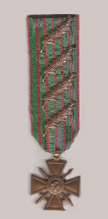 Il a le droit au port de la Fourragère aux couleurs du ruban de la Médaille militaire.