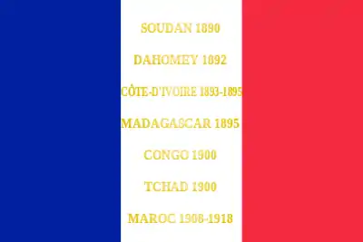 Soudan 1890 Dahomey 1892 Côte d'Ivoire 1893-1895 Madagascar 1895 Congo 1900 Tchad 1900 Maroc 1908-1918  |