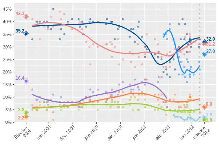 | Période | Libéral | Parti québécois | Action démocratique | Québec solidaire | Indépendant | Option nationale | Coalition avenir |