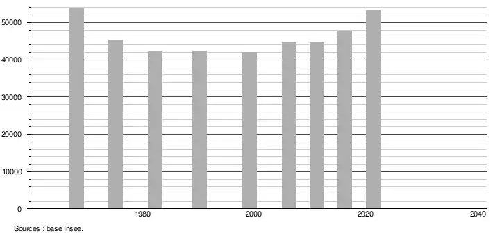 - Population municipale légale en vigueur au 1er janvier 2024, millésimée 2021, définie dans les limites territoriales en vigueur au 1er janvier 2023, date de référence statistique : 1er janvier 2021.
