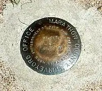 Un petit jardin public y avait été aménagé pour le signaler aux visiteurs, et un marqueur géographique y avait été scellé dans le sol, avec un panneau explicatif installé à côté, par la commission des parcs du comté de Marathon. Le panneau indiquait[3],[8],[9] :