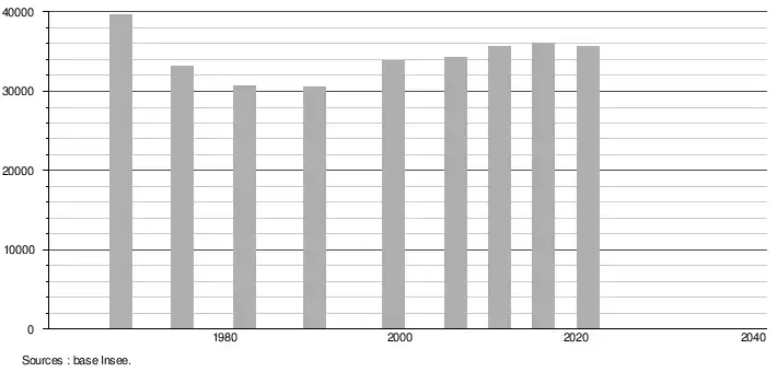 - Population municipale légale en vigueur au 1er janvier 2024, millésimée 2021, définie dans les limites territoriales en vigueur au 1er janvier 2023, date de référence statistique : 1er janvier 2021.