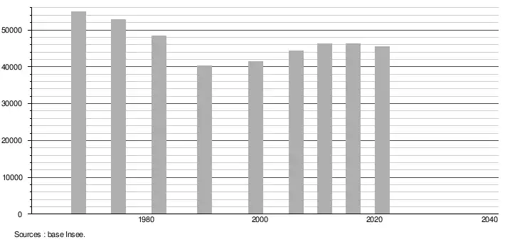 - Population municipale légale en vigueur au 1er janvier 2024, millésimée 2021, définie dans les limites territoriales en vigueur au 1er janvier 2023, date de référence statistique : 1er janvier 2021.