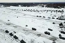 - 138e brigade de fusiliers motorisés de la Garde Krasnoselskaïa (159 MT-LB, 41 T-72B3, 11 BTR-80, 4 BRDM-2, 36 2S3 Akatsiya, 18 BM-21 Grad, 12 9K331 Tor-M2U, 6 9K34/35 Strela-10, 6 2S6M Tunguska et 27 9K38 Igla), à Kamenka (ru) dans le raïon de Vyborg ;