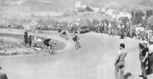 | Les coureurs dans la descente de La Mure lors de la 8e étape du Tour de France 1935 | |||||||||||||||||||||||||||