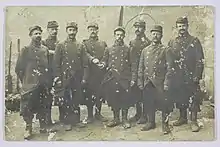 Soldats du 97e RIT posant peu après leur mobilisation (août 1914). | |