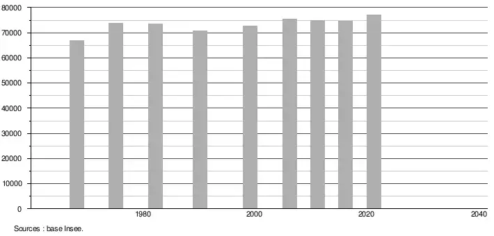 - Population municipale légale en vigueur au 1er janvier 2024, millésimée 2021, définie dans les limites territoriales en vigueur au 1er janvier 2023, date de référence statistique : 1er janvier 2021.