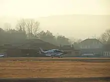 Vue aérienne de l’aérodrome depuis le mont Saint-Michel. | |||||||||||||