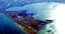 La piste d’atterrissage, à peu près orientée nord-sud, mesure 2,1 km de long, avec une extension prévue à 2,5 km[23].
