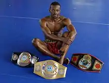 Aïello Batonon avec ses différentes ceintures