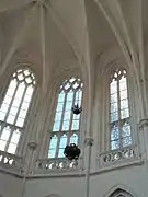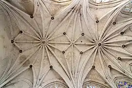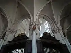 Les voûtes reposent sur des piliers cylindriques avec quatre colonnes engagées. La décoration des nervures, des clefs de voûte et des chapiteaux est faite d’une profusion de feuillage enroulé où l’on distingue, varech, feuilles d’érable, de vigne, de houblon, de chêne, de chardon etc.