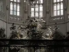 Les chapelles rayonnantes ont toutes reçu la même décoration : boiseries de chêne sculptées laissant place à un tableau et une grille de fer forgé.