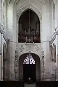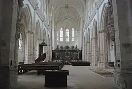 Il est séparé de la nef par une grille du XVIIe siècle exécutée sous l’abbatiat de Charles d’Aligre. Les voûtes d’ogives sont à liernes et tiercerons avec clefs sculptées de feuillage. Le cordon au-dessus des arcades est composé d’une guirlande de rose de Provins. La balustrade posée sur un larmier décoré de minuscules têtes d’hommes et d’animaux est de style flamboyant.