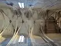 Son accès s'effectue, depuis le cloître, par un portail flanqué de grandes fenêtres doubles de chaque côté, le tout supporté par des colonnettes et des chapiteaux de différents types : feuille d'acanthe, feuille plate, feuille d'eau. Certaines de ces colonnes sont en marbre et proviennent sans doute d'une villa romaine préexistante. De beaux vases du cardinal de Bonzi ont été placés entre les baies. Une nef unique, sans piliers, supporte la voûte surbaissée en anse de panier. À l'est, sur le mur du fond, s'ouvre une fenêtre à trois ouvertures ("triplet cistercien" en souvenir de la trinité). Des fragments du jubé mutilé lors des guerres de Religion, aujourd'hui réinstallés sur les bancs, avaient été utilisés par les moines pour bâtir l'escalier menant à la Porte des Matines. On peut encore admirer certaines scènes : "Les Saintes Femmes au Tombeau", "Mise en croix", "Annonciation", "Baptême du Christ", "Déposition", "Arrivée du Christ à Jérusalem", "Jésus parmi les Docteurs".