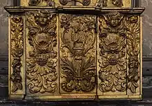 - L'église : de l'abbaye médiévale, il ne subsiste aujourd'hui de l'église que la façade gothique, le chœur ou plus exactement l'abside et le transept. Ces éléments sont datés des XIIIe et XIVe siècles et du XVe siècle[17].