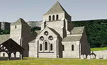 Seule une partie des structures relevées par photo aérienne à l'est des bâtiments abbatiaux a été interprétée : « tour des archives » (ancien clocher ?), vivier ou lavoir (?), hôtellerie (?), colombier (?), et grange ou grenier.