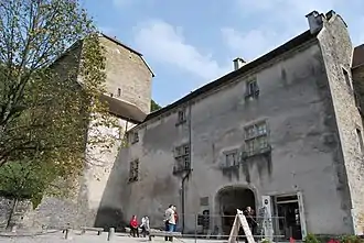 La cour est bordée par d'autres bâtiments du XVIe siècle, la tour de justice et l’hôtellerie.