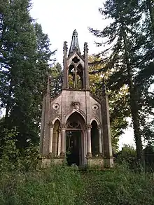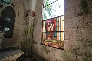Des vitraux du XVIIe siècle ont été réutilisés dans cette construction néo-gothique.