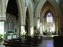 La première pierre de l'église abbatiale est bénite en 1857 et l'église est consacrée le [3]. Elle est bâtie en style anglais selon les plans d'Edward Welby Pugin, fils du fameux Augustus Welby Pugin; ce choix démontre l'optimisme de l'époque qui donnait des racines nationales au renouveau catholique d'alors en Angleterre[5].