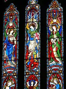 L'église est connue pour la qualité de sa statuaire et de ses vitraux. Certains montrent des anges avec des harpes, des cymbales et des orgues. On remarque un retable d'anges à l'est et une grande verrière de l'époque victorienne montrant saint Michel (patron de l'abbaye) tenant son épée et son bouclier afin de combattre le dragon, l'archange Raphaël et l'archange Gabriel avec les neuf chœurs d'anges, placés en un orchestre chantant les louanges de Dieu[6].