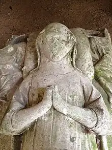 Un gisant repose dans la chapelle sud de l'église et porte les costumes du milieu du XIIIe siècle. À ses pieds, deux chiens se disputent des os. La tête de la défunte repose sur un oreiller tenu par deux anges quelque peu brisés. Ce gisant représenterait Marie de Ferrière.
