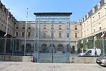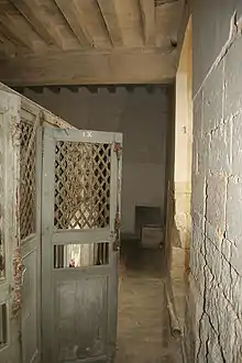 Des réaménagements successifs sont apportés jusqu'à la fermeture de la prison, le , sans toucher à l'essentiel des structures. Prenant appui sur l'ancienne clôture, Normand fait construire un véritable chemin de ronde autour du Grand-Moûtier. Des nouveaux bâtiments sont construits près de l'abbatiale et dans les cours[55]. La nef de l'abbatiale est séparée par deux niveaux de planchers pour y loger des dortoirs de détenus et des ateliers, le chœur fait office de chapelle. Si certains bâtiments sont détruits ou fortement endommagés, les travaux et la transformation en prison ont néanmoins sauvé le gros œuvre de la ruine[56].