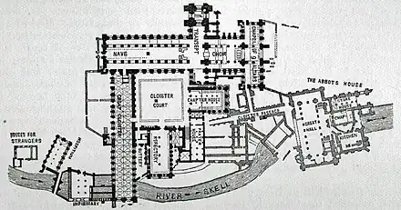 - (en) Cet article est partiellement ou en totalité issu de l’article de Wikipédia en anglais intitulé « Fountains Abbey » (voir la liste des auteurs).