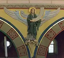 Le cycle des anges, daté de 1225/30, est reconnu comme l'apogée du byzantinisme saxon[3]. Les quatorze figures d'anges attachées aux arcades de la nef mesurent environ 1,25 m de haut et peuvent être interprétées comme un chœur d'anges apocalyptiques avec des lurs (les 4 figures d'angle) ou des rubans. Il y a également 5 têtes de donateurs du XIIe siècle, des reliefs de combattants, des chapiteaux et ornements en filigrane sous les galeries de 1240-1250 ainsi qu'une épitaphe de la Renaissance en grès de près de 10 m de long.