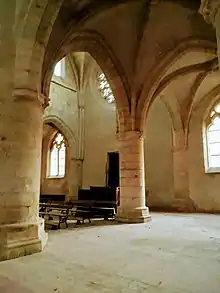 Les réparations tardent et ne s’achèvent qu’en 1968, grâce à la participation de tous les villageois qui font notamment de nombreux dons de tomettes pour le dallage de abbatiale, ce qui donne aujourd'hui lieu à une mosaïque de tomettes unique en son genre. Cependant le toit a été rapidement reconstruit en ardoise, en abandonnant les tuiles d'origine. Mais celles ci sont en train d'être remises en place à l'identique grâce aux travaux de rénovation lancés actuellement. Les travaux de rénovations en cours aujourd'hui ont également permis la réhabilitation des vitraux d'origine en partie retrouvés et complétés grâce aux travaux d'architecte des monuments historiques.