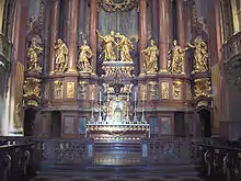 La réalisation de l'autel est due à Antonio Beduzzi, les fresques de l'église sont de Michael Rottmayr, les statues de Peter Widerin (1733).