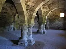 Au-dessus de la salle capitulaire et de la salle des moines se situait le dortoir, auquel on accédait par l'escalier depuis le cloître, ou par une échelle qui permettait de rejoindre directement l'abbatiale, en particulier pour l'office de matines. Son pendant côté ouest, dans le bâtiment des convers, était le dortoir de ces derniers[7].