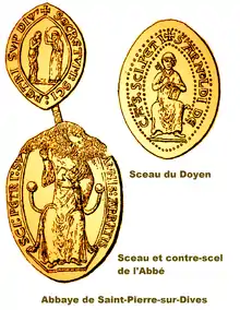 Sceau et contre-scel de l'abbé Jean et sceau du doyen de l'abbaye de Saint-Pierre-sur-Dives.