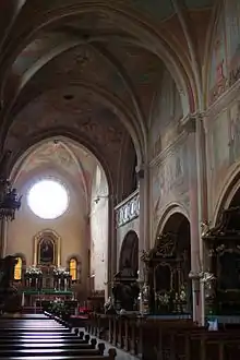 L'abbaye actuelle est principalement à dater du milieu du XVIIIe siècle (grandes reconstructions de 1643 et 1687), à l'exception de l'église abbatiale, qui, hors clocher baroque et toiture, date du XIIIe siècle ou de la fin du XIIe. En revanche, la décoration intérieure de l'église date principalement du XVIIIe siècle, notamment son décor de peinture dont l'achèvement est probablement à dater de 1764[7]. De manière générale, la richesse de la décoration et de l'ornementation tranchent avec la sobriété généralement requise dans l'architecture cistercienne ; d'ailleurs, constatant ce relâchement des coutumes architecturales de sobriété et d'austérité, en particulier dans les abbayes polonaises et hongroises, le chapitre général cistercien de 1204 exigea un changement d'attitude et le retour à plus de simplicité[9].