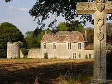 Le croisillon gauche de l'église se prolonge d'un bâtiment allant jusqu'à la rivière avec une aile perpendiculaire qui limitait un cloître.