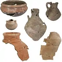 Une fiole annulaire intacte, apparemment datée de l'âge du bronze tardif, a été trouvée dans le relevé à proximité de la zone A.