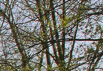 ![]() Vue détaillée des franges de dispersion chromatique, notamment sur les bords de la branche des lunettes. |