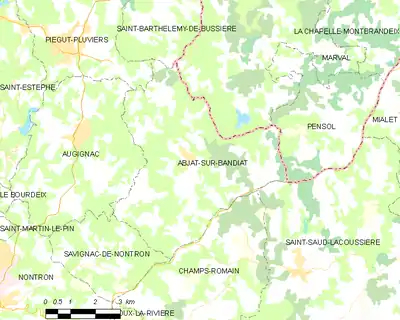 La commune d'Abjat-sur-Bandiat est située tout au nord du département de la Dordogne.