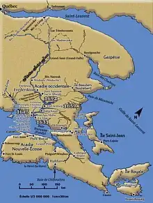 Le territoire de l'Acadie fut exploré vers l'an mil par les Vikings[3]. Dès le XIIIe siècle, des pêcheurs basques, bretons et normands ainsi que des marchands de fourrures fréquentent les côtes[4].