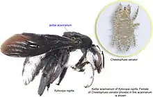 - (en) Barry M. OConnor, 1993, The mite community associated with Xylocopa latipes (Hymenoptera: Anthophoridae: Xylocopinae) with description of a new type of acarinarium, International Journal of Acarology Volume 19, Issue 2, Pages 159-166, Doi