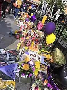Des monuments à travers les États-Unis, y compris l'aéroport international de Los Angeles, le Madison Square Garden et l'Empire State Building, et dans le monde entier, étaient éclairés en violet et en or en honneur de la mémoire de Kobe Bryant[43],[44],[45],[46].