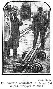 - Par exemple dans L'Humanité : « je n'allais qu'à 70 lorsque (...) je sentis soudain que ma machine avait quitté les rails et que je roulais sur le ballast » (L'Humanité du 2 juin 1930, p. 2]) ; dans [https://gallica.bnf.fr/ark:/12148/bpt6k632168w/f1.item.zoom Le Petit Journal du 2 juin 1930, p. 1 : « nous avons brusquement senti très nettement que la machine roulait sur les cailloux » et dans Le Petit Parisien du 2 juin 1930 : « tout à coup, je sens que je suis sur le ballast ».