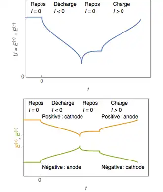 L'utilisation de la batterie à travers charge puis décharge donne lieu à des pertes. Ces pertes sont caractérisées par une efficacité énergétique, décomposée en deux termes[6] : efficacité coulombique (de courant) et efficacité de voltage.