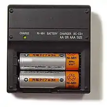 La capacité de charge électrique, souvent appelée dans le langage courant capacité de l'accumulateur, est la charge électrique que peut fournir l'accumulateur complètement chargé pendant un cycle complet de décharge. Sa valeur initiale théorique doit être indiquée par le constructeur, suivant la réglementation actuelle (en Ah ou mAh, voir ci-dessus). Elle dépend de l'intensité de décharge (selon la loi de Peukert) et diminue au cours de la vie de l'accumulateur. La méthode de mesure la plus répandue consiste à mesurer, pour un courant de décharge constant donné, le nombre d'heures durant lesquelles l'accumulateur fournit ce courant, avec une tension supérieure à la tension de seuil (qui vaut, par exemple, 0,9 V pour un accumulateur NiMH)[5]. La tension à vide de l'accumulateur, facile à mesurer avec un voltmètre, ne donne généralement pas une indication fiable de la charge restant dans l'accumulateur, sauf dans le cas de la technologie lithium-ion.