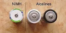 Le marquage « Rechargeable » est obligatoire sur les accumulateurs NiMH et NiCd[7]. Lorsque le marquage est illisible ou effacé, sur les éléments cylindriques, on peut distinguer les accumulateurs des piles alcalines par le fait que les accumulateurs ont souvent une borne supérieure (pôle +) entourée de plastique, alors que les piles alcalines ont une borne supérieure en métal. La connaissance de ce détail permet d'éviter des erreurs, mais la règle n'est pas absolue.