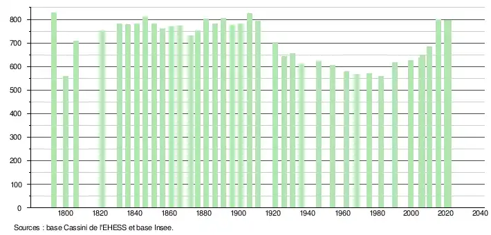 795 hab. (2021 en diminution de 0,5 % par rapport à 2015)