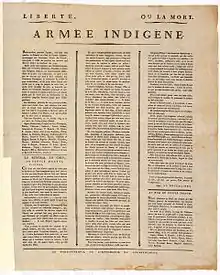Les généraux, pénétrés de ces principes sacrés, après avoir donné d'une voix unanime leur adhésion au projet bien manifesté d'indépendance, ont tous juré à la postérité, à l'univers entier, de renoncer à jamais à la France, et de mourir plutôt que de vivre sous sa domination[1]. »
