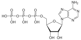 ![]() Structure de l'adénosine triphosphate ![]() ![]() ATP4−, espèce dominante en solution aqueuse |