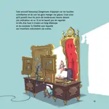 Autorisé par la licence libre, on trouve également, sur la forge du projet, une version numérique du livre avec uniquement les illustrations, pour servir notamment de support à des lectures publiques dans les écoles ou les bibliothèques[13]. Certaines de ces illustrations sont par ailleurs aussi proposées sans couleur pour inviter les enfants à faire du coloriage[14].